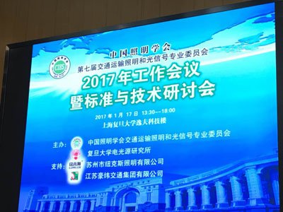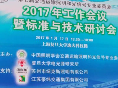 2017年1月17日,中国照明学会第七届交通运输照明和光信号专业委员会暨标准与技术研讨会在上海复旦大学举行。来自全国各地的专家学者和委员代表40多人出席了会议。会议由复旦大学电光源研究所主任林燕丹主持。会议首先由中国照明学会秘书长窦林平和复旦大学光研究所郭睿倩致辞,复旦大学电光源研究所沈海平、中国铁道科学研究院王朝霞、武汉理工大学杜志刚、上海机动车检测论证技术研究中心卜伟理、苏州纽克斯公司浦敏、上海澳星照明俞伟民分别就道路照明、铁路信号、汽车照明和交通信号灯发展趋势作了交流发言,江苏豪纬交通集团有限公司董事长助理陈恩平对公司发展情况向与会人员作了简单的介绍。在本次会议上,江苏豪纬交通集团有限公司董事长郝炳和当选为中国照明学会第七届交通运输照明和光信号专业委员会副主任,公司副总经理徐进当选为委员。